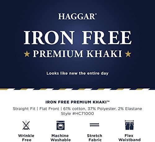 BUY NOW – Haggar Men’s Iron Free Premium Khaki Straight Fit Flat Front Flex Waist Casual Pant