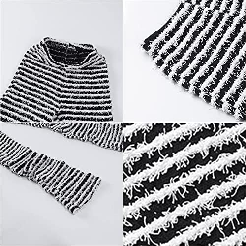 Design: Striped stacked sweatpants with fringe tassels, slim fit cutting design, sexy chic style. This patchwork knitted joggers can better highlight your beautiful body curve.