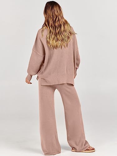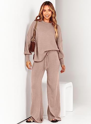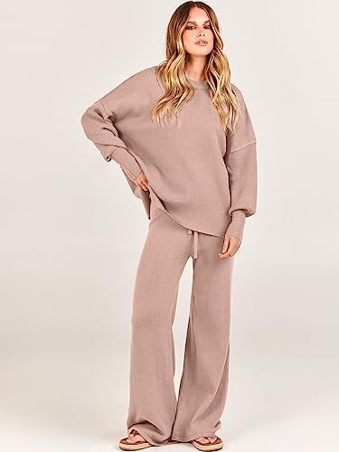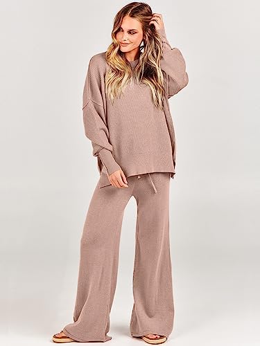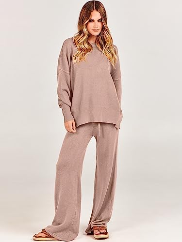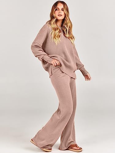 ANRABESS Women’s 2 Piece Sweatsuit: Oversized Sweater Set & Wide Leg Pants for Fall Chunky Lounge Set