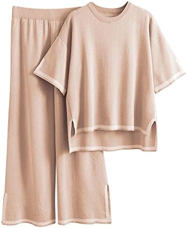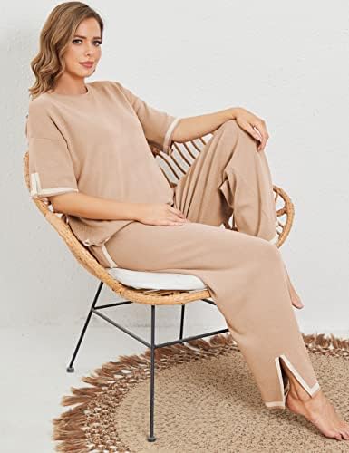 “Faleave Women’s Knit 2-Piece Sweater Set: Short Sleeve Pullover Top + Wide Leg Pants Lounge Set”