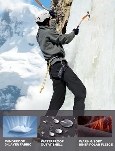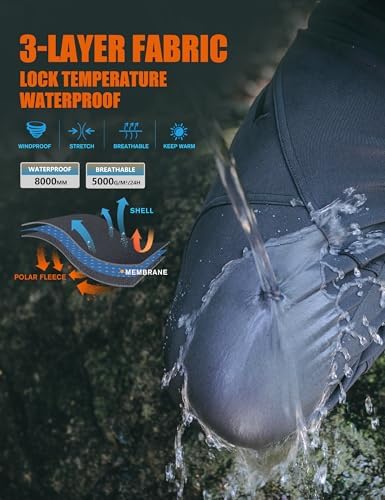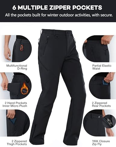 “Stlight Men’s Waterproof Softshell Ski Pants with Fleece Lining and 6 Zip Pockets”