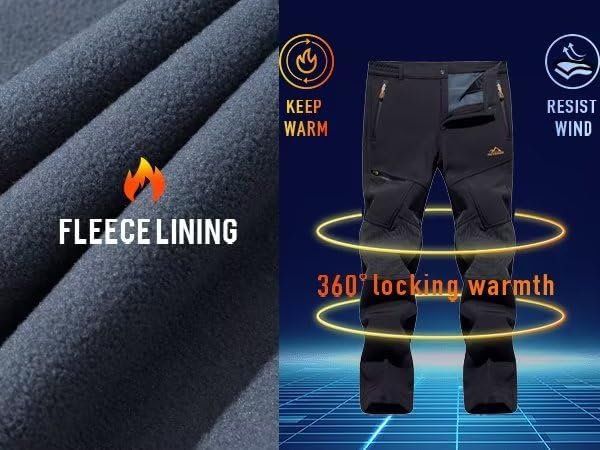 Thicken fleece lining and reinforced knees give you more freedom and warm when active.
