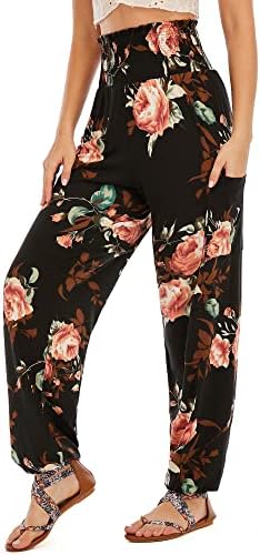 – Features: Women harem pants boho palazzo hippie floral yoga trouser, High waist design, with a combination elastic in waist, elastic waist and ankle, 2 large side pockets. Loose style boho pants fit for many shapes. Simple and classic style.