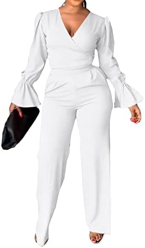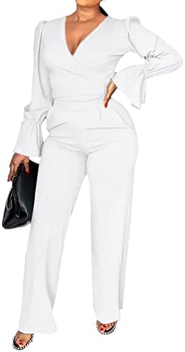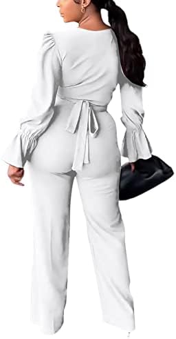 BUY NOW – Rooscier Women’s 2 Piece Outfits Wrap V Neck Flounce Long Sleeve Top with Pants Sets