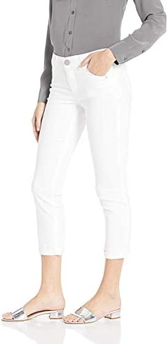 Built from the bottoms up, Democracy is a brand that offers a universal fit for all body shapes and sizes. It aims to provide an effortless aesthetic that is accessible and affordable. Democracy introduces emerging trends in a way that meets the lifestyle needs of its customers. The brand embraces and enhances the confidence of its customers, evolving their personal style. The package dimensions for this product are 14.61 x 10.79 x 2.32 inches and it weighs 14.07 ounces. The item model number is B1176BBIC and it is designed for women. It was first available on February 15, 2018. The manufacturer of this product is Democracy. The ASIN is B076DVTYQD. The jeans have a zipper closure and are machine washable. They are made with innovative construction that incorporates super-stretch denim, slimming panels, a hidden inner elastic waistband, mesh panels, signature curved back yoke, and strategically placed pockets. The jeans are a classic crop style with an optional cuff and are made with premium, soft fabrics. The inseam length is 27 inches, but they can be cuffed to 25 inches or rolled up. The product is imported.