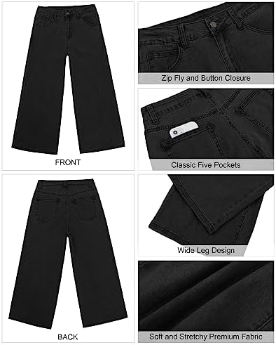 GRAPENT 2023 Women’s Wide Leg High Waisted Crop Denim Capris: Stretchy Baggy Jeans