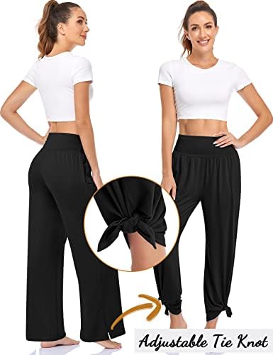 The package dimensions of the product are 11.22 x 9.72 x 1.85 inches, and it weighs 11.68 ounces. It is available in various sizes for women (S, M, L, XL, XXL) and has an elastic closure. The material is extremely flexible, cozy, and skin-friendly. The pants feature a side slit chic and tie-knotted cuff design, wide legs, a high waist, and two deep pockets. They are suitable for various occasions such as yoga, pilates, relaxation at home, workouts, dancing, work, walking, running, hiking, camping, fitness, and even sleep. The pants are available in different colors such as black, dark grey, navy blue, brown, light coffee, army green, red, light grey, and pink.