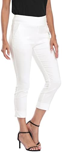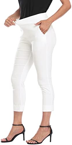 BUY NOW – HDE Pull On Capri Pants for Women with Pockets Elastic Waist Cropped Pants
