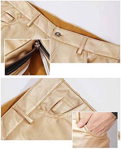 – Slim fit leather jeans, elastic leather give you more comfy wearing experience, thin velvet inside keeps you warm in autumn and also absorb sweat.