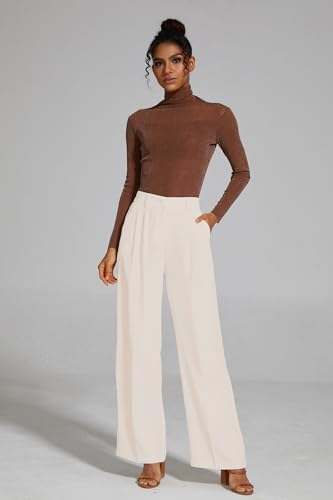 – Back elastic waist, high-waisted wide leg style, pleated front
