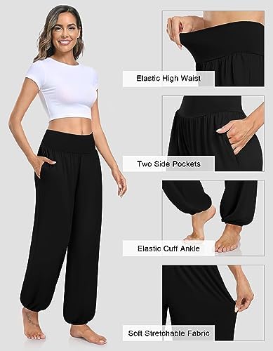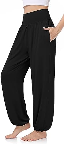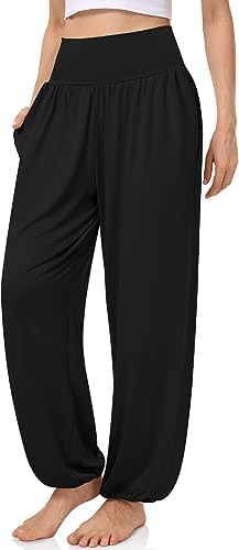 “UEU Women’s Harem Pants: Comfy High Waisted Lounge Joggers with Pockets”