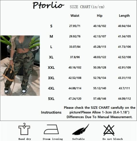 The Women’s Cargo Camo Pants by Ptorlio are made of a comfortable and slim fit material. They feature a camo print in black, green, or brown, an elastic waistband, and ankle length. These high waisted cargo pants also have pockets and come with an adjustable waistband in the colors army green and grey. They are suitable for sports, fitness, work, daily wear, and various activities such as jogging, climbing, partying, riding a bike or motorcycle, traveling, vacationing, dancing, and dating.