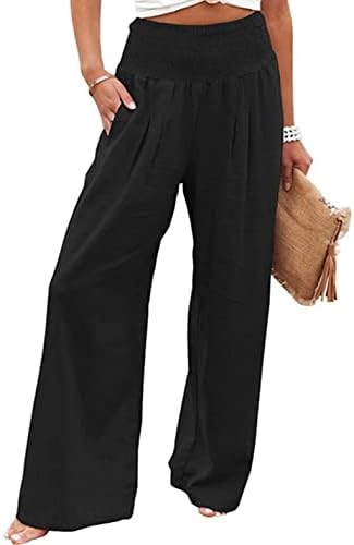 Korebow Linen Pants: Casual Loose High Waist Wide Leg Trousers with Pockets
