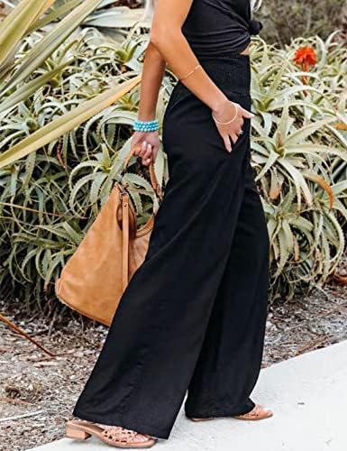 The KOREBOW Linen Pants for Women are made of soft and skin-friendly fabric. They are lightweight, breathable, and comfortable to wear. They have a wide leg design and an elastic closure. The pants also have two hand pockets. They are suitable for all seasons and occasions, and can be paired with tank tops, crop tops, shirts, and blouses for a casual look. The pants are available in US sizes and have a loose fit.