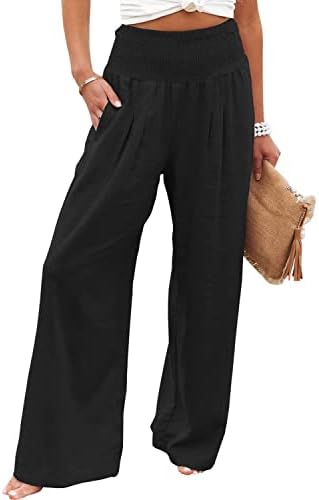 – Features: Smocked high waist, straight wide leg, loose fit lounge pants with pockets, linen beach pants for women cover up, flowy dressy pants comfy and chic.