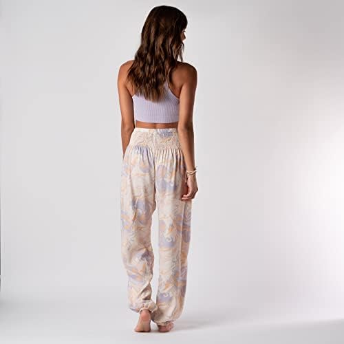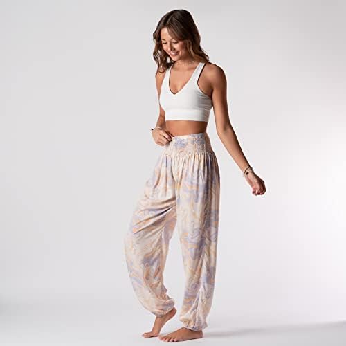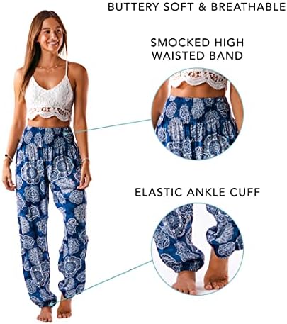The Harem Pants from Lotus and Luna are known as the comfiest pants in the world. They are high waist, smocked waist pants with a cuffed bottom. These pants are suitable for various occasions, including yoga, shopping, brunch, or the beach.