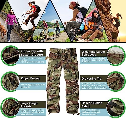 The camo pattern, short for camouflage, gives these pants a military-inspired look that never goes out of style. The earthy tones and patterns blend seamlessly into nature, making them perfect for hiking, camping, or even just running errands in the city.