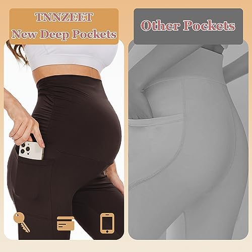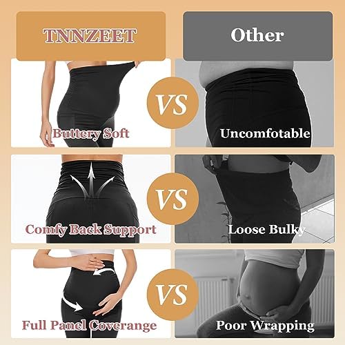 TNNZEET Maternity Leggings with Pockets, Black Over the Belly Pregnancy Pants