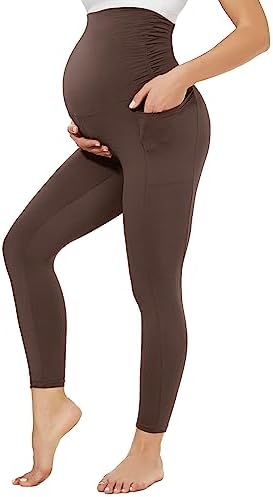 BUY NOW – TNNZEET Maternity Leggings Over The Belly with Pockets, Black Workout Yoga Pregnancy Pants