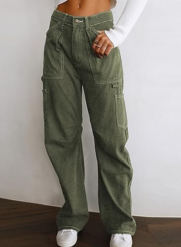 BUY NOW – Dokotoo Corduroy Cargo Long Pants Women Wide Leg High Waisted with Pockets Casual Pants