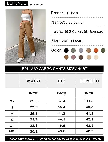 Lepunuo focuses on women’s pants made of high-quality cotton fabric and soft elastic wear-resistant fabric. The pants are high stretch, moisture-wicking, and comfortable. They have 6 pockets, a stretch elastic high waist, and a relaxed fit. The pants have a zipper and button closure and are suitable for all-day wear. They are imported and have a cargo style, making them ideal for casual or sporty outfits. The package dimensions are 10.63 x 7.68 x 0.43 inches and the item model number is Cargo Pants for Women. The pants are available for purchase since July 18, 2023, and are manufactured by Lepunuo. The ASIN is B0CBLRD2CD.