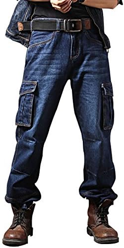 “Idopy Casual Motorcycle Workwear Denim Biker Cargo Jeans with Multi Pockets”