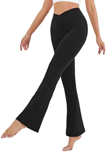 – Features: The pants are made of a premium polyester and spandex blend, making them super soft, comfy, and moisture resistant. The fabric is dense and 4-way stretch, ensuring they are non-see-through. The pants have a V cross high waist design for slimming the body, tummy control, and butt lift. The high-rise waistband is elasticized for a flexible fit, and the ultra-wide leg design provides a relaxed fit. The pants are suitable for various occasions, such as work, leisure, hiking, jogging, etc. They can be paired with a t-shirt, suit, or jacket.