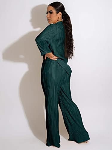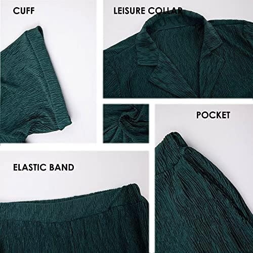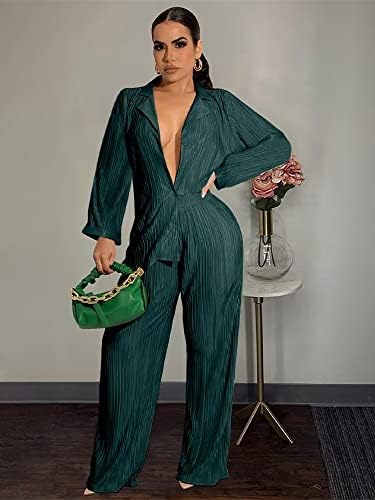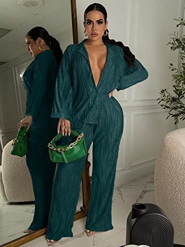 “Ekaliy Women’s 2-Piece Dressy Outfit: Long Sleeve Button Down Shirt and Wide Long Pants”