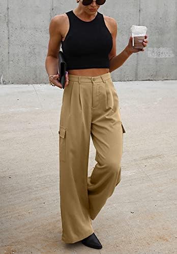 BUY NOW – Dokotoo Womens High Waisted Wide Leg Cargo Pants Baggy Casual Combat Military Pants with 4 Pockets