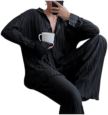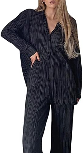 2023 New texture loose – thin folds and casual set is a women’s 2 piece outfit made of high-quality polyester. It is suitable for spring, summer, and autumn seasons. The set features a long sleeve button-down pleated shirt with a turn-down collar and button closure, and pants with an elastic waistband and wide leg. The fabric is breathable and skin-friendly, providing ultimate comfort. The set comes in various colors such as black, lake blue, and purple. It can be paired with sneakers, sandals, high heels, headbands, and other accessories. It is a great gift for women and young ladies on birthdays or other holidays. The set is perfect for daily wear, night out, office, beach, vacation, leisure, shopping, parties, clubs, music festivals, fashion shows, streets, parks, and more. The package dimensions are 14.61 x 12.36 x 1.97 inches, and it weighs 1.43 pounds. The product is manufactured by Komoo and its ASIN is B0B2P2466B.