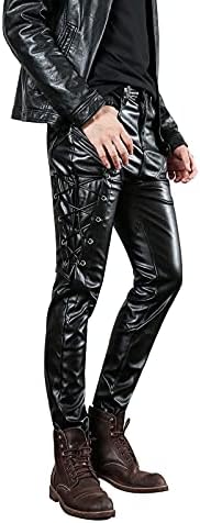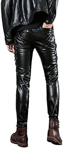 DSDZ Rock Punk Men’s Zippers Patch PU Leather Hip Hop Skinny Motocycle Pants – Brief Title