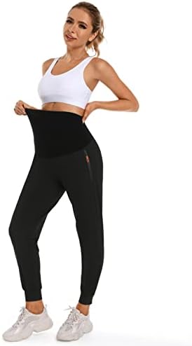 Foucome Maternity Joggers with Quick Dry Zipper Pockets for Pregnancy Sweatpants