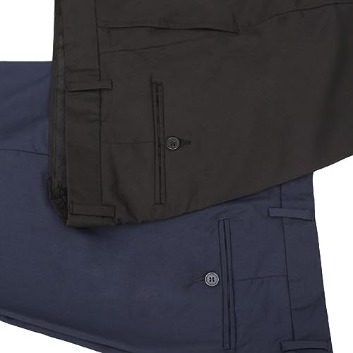 The dress pants feature a hook and bar closure and are machine washable. They have a slim fitting design that not only provides comfort but also makes the wearer look slimmer and taller. The pants also have two button closure back pockets and a waistband that adapts to the shape of the wearer for ultimate comfort.