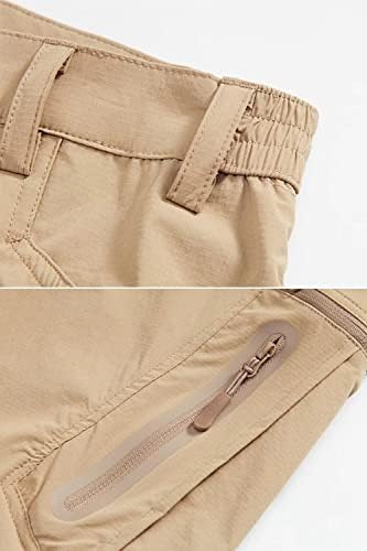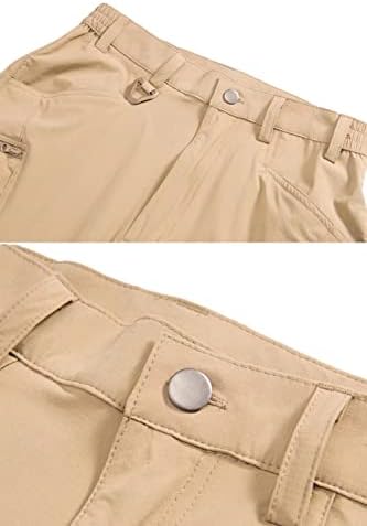 The pants feature a classic cargo pants figure with a straight leg design for lightweight performance. It has an elastic waist with dilated belt loops (belt not included) for flexibility. It has 8 pockets, including 2 front slash pockets, 2 cargo pockets, 2 zipper pockets on the cargo pockets for increased storage, and 2 back zipper pockets.