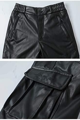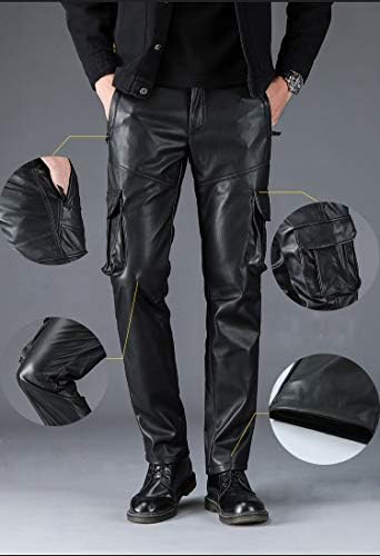 Idopy Men’s Faux Leather Cargo Pants with Multiple Pockets for Motorcycle Workwear