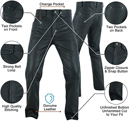 Dream Apparel Men’s Motorcycle Leather Pants with 5 Pockets