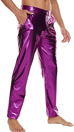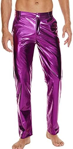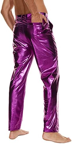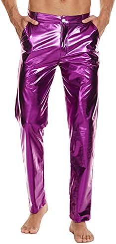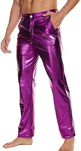 – Men’s Metallic Shiny Disco Pants, Wet Look Party Dance Straight Leg Trousers, 70s/80s Festival Rave Cosplay Leather Pants.