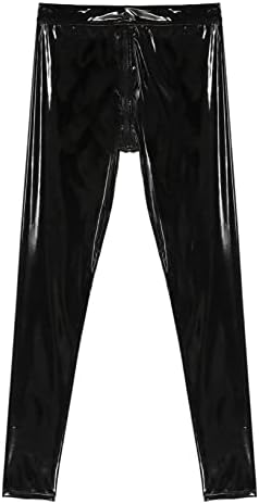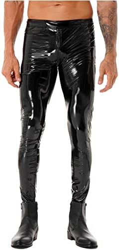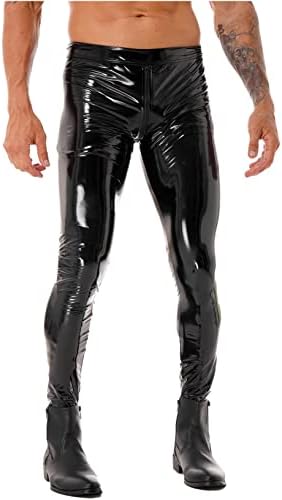 “Oyolan Men’s Black Faux Patent Leather Skinny Performance Pants: Stretch Leggings Bodywear Trousers”