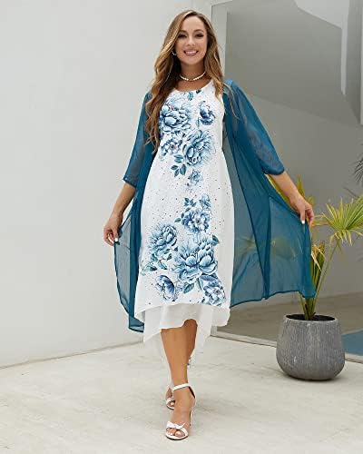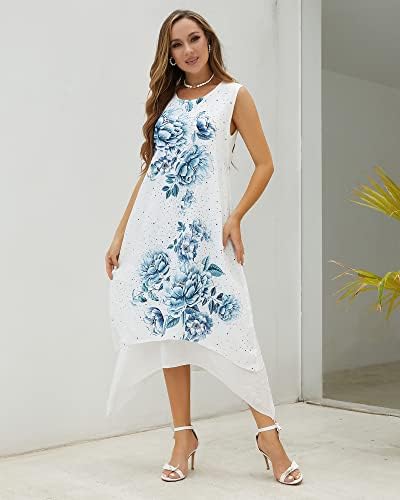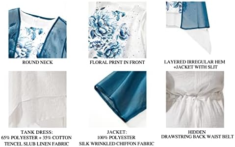 – Unique Design: The Women’s 2 Piece Linen Dress Set features a round neck, 2 layered ruffle irregular hem, floral print, loose-fitting sleeveless tank dress, and a sheer long ruffled cardigan/cover up/jacket with a slit. It also has a hidden drawstring waist belt at the back for adjusting the waist.