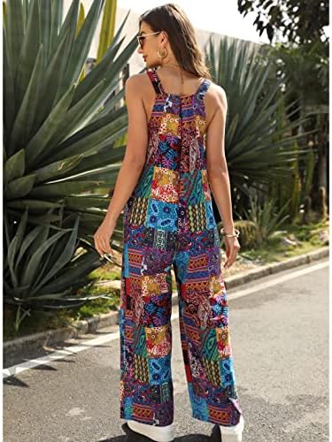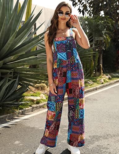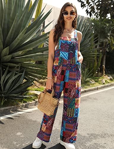 Himosyber Women’s Patchwork Jumpsuit: Floral Bohemian Wide Leg Overall