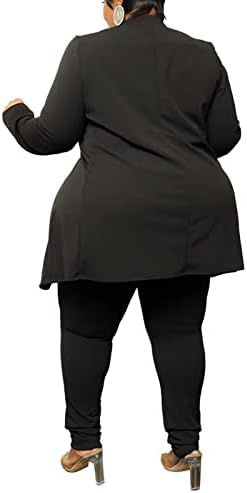 The product is a two-piece outfit for women, which includes a long sleeve jacket coat top and skinny pant. It is available in plus size. The blazer can be worn as a tunic independently. It is suitable for wearing with high heels in spring, fall, and winter.
