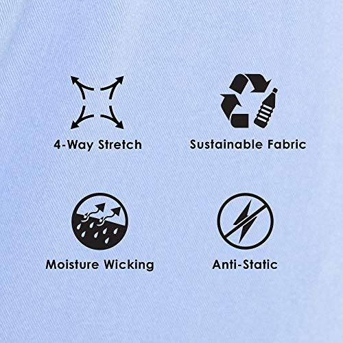 – The fabric has soil release and 4-way stretch properties.