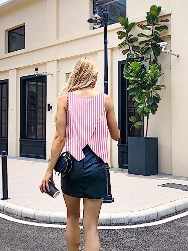 Top: Loose fit, satin sleeveless top. crewneck Solid color tank, casual nightwear.