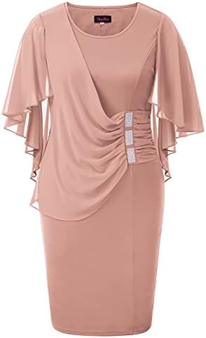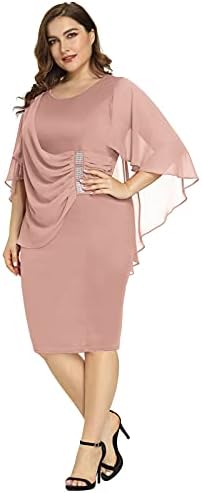 BUY NOW – Hanna Nikole Women’s Plus Size Chiffon Ruffle Flattering Cape Sleeve Bodycon Pencil Dress
