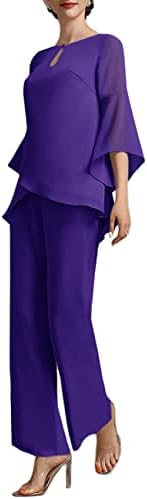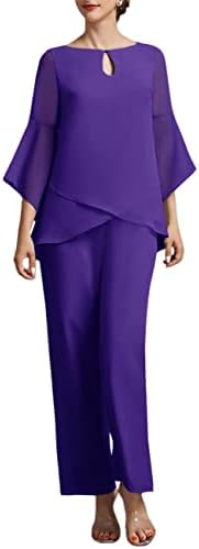 Zongqiven Women’s Chiffon 2 Pcs Pant Suit: Elegant Mother of the Bride Pantsuit