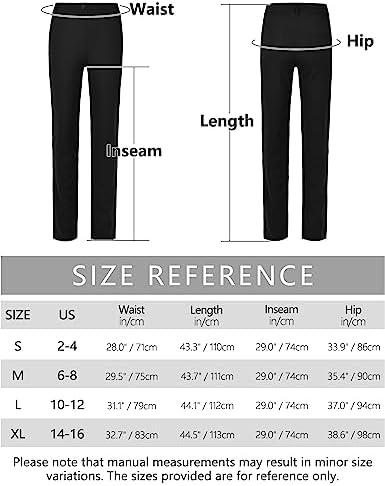 The women’s high waist dress pants feature a straight leg design and are tailored to fit your curves. The two faux pockets on the front can be used for decorative purposes, while the two real pockets on the back are great for carrying small items. The pants are flat-front pull-on with a non-functional button and faux fly, making them comfortable and convenient to wear. They are made from wrinkle-resistant, durable, and easy-care fabric that is 4-way stretch and not see through. The pants can be dressed up or down and are suitable for all seasons and climates. The elastic band at the waist offers extra flexibility and movement. The pants come in different sizes and can be machine washed. They have a classic design with belt loops and are suitable for formal or casual occasions.