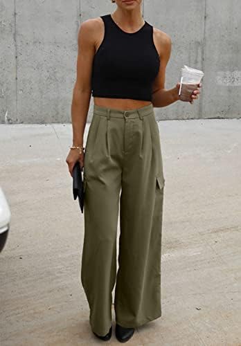 BUY NOW – Dokotoo Womens High Waisted Wide Leg Cargo Pants Baggy Casual Combat Military Pants with 4 Pockets