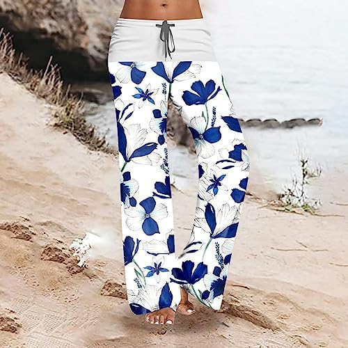 COKUERA Wide Legged Pants: Trendy Print, Elastic High Waist, Casual Loose Drawstring Palazzo Lounge Slack Pant