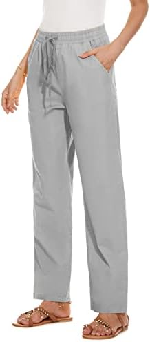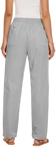 The clothing items are imported and have an elastic closure. They can be machine washed. The fabric of the women’s stretch cotton pants is 97% cotton and 3% spandex, making them breathable, soft, and stretchy. The pants have a high waist, elastic waist, drawstring, and straight leg design. They have a simple look with smooth lines and neat sewing. The pants come in a solid color and have a loose fit. They have two diagonal pockets on the front and two utility pockets at the back.