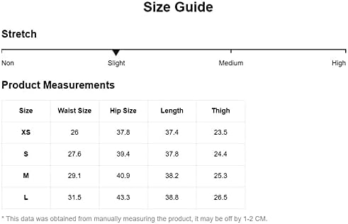 – Size Chart: X-Small: Waist Size: 26″, Hip Size: 37.8″, Length: 37.4″, Thigh: 23.5″ / Small: Waist Size: 27.6″, Hip Size: 39.4″, Length: 37.8″, Thigh: 24.4″ / Medium: Waist Size: 29.1″, Hip Size: 40.9″, Length: 38.2″, Thigh: 25.3″ / Large: Waist Size: 31.5″, Hip Size: 43.3″, Length: 38.8″, Thigh: 26.5″